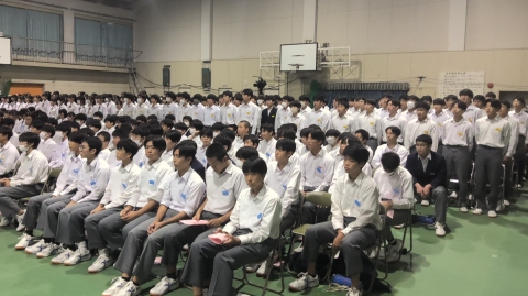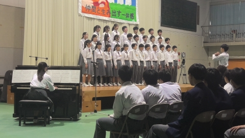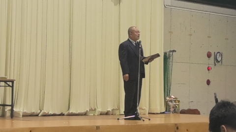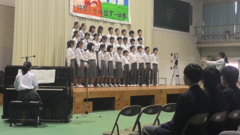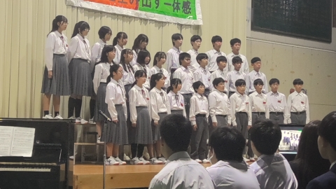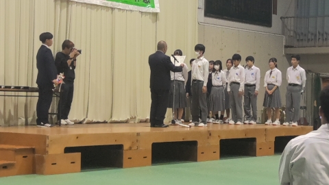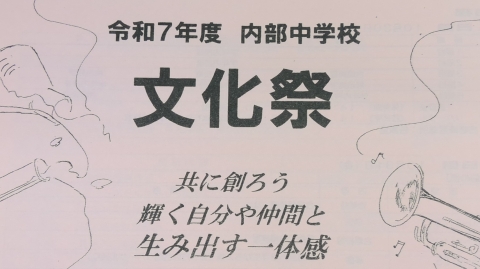 学校長挨拶「展示発表・舞台発表」を終えて、「すばらしい文化祭でした」「各学年合唱コンクールに取り組む姿勢が日に日によくなっていました。クラスの良さがあふれていました。昨日の展示発表もしっかりと、じっくりと拝見しました。素晴らしい作品ばかりでした。本日の舞台発表で吹奏楽部の演奏、全国で銀賞という素晴らしい成績、私たちは、一流の音楽に触れる機会に恵まれています。音楽を楽しむ喜びがあふれていました。3年生の総合の発表では、平和学習の原爆ドームの前での合唱は、当日訪れていた人たちに感動を与えていました。素晴らしいものでした。これらの内部中学校の伝統をぜひ引き継いでいってほしいです。