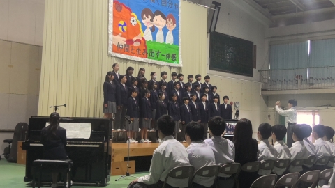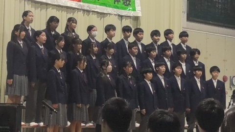 副会長挨拶「文化祭を終えて」三年生の合唱に感動しました。来年も頑張りたいです。