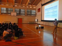 今日は修学旅行2日目都内クラス別分散の説明が体育館でありました。