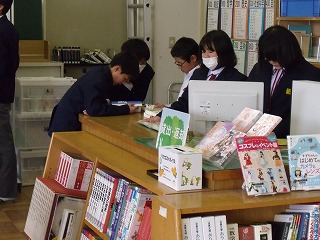 昼休みに図書室を覗くと、たくさんの生徒が本を読んだり、返却したり、借りたりしていました。図書委員もデスクでパソコンを見ながら本の管理。今は、文明が進んでいるので、本の貸し借りは、パソコンに入力するのではなく、本のバーコードを「ピピッ」と読み込むだけでOK!! すごく楽になったものだ。 楽になったとは言え、図書委員の皆さん、ありがとう。 君たちのおかげで、毎日、本を借りることができます。