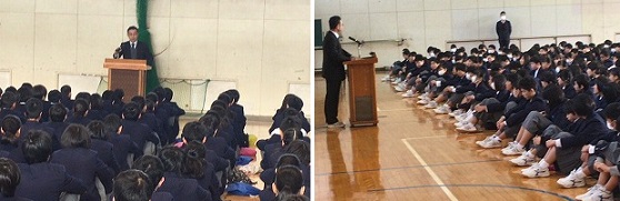 3年生には,「義務教育残り2か月を精いっぱいやりきり,充実した卒業式を迎えること。」「インフルエンザ等,健康に気を付けること。」の2点のお話。