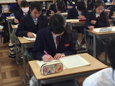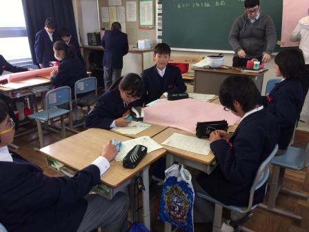 本日の1年生の道徳は、職業調べの第1弾を行いました。冬休みの間に生徒一人一人が、身近な職業や、興味のある職業について調べており、本日の授業では、集めてきた情報をまとめて班で共有を行いました。