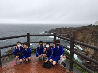 那智の滝Aチーム、三段壁洞窟を見学しました。洞窟には海の激しい波が入り込み、激しい波しぶきをあげていました。お土産も買いました。