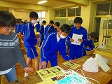 放課後,卓球部男子の人が,新一年生の春休みの宿題冊子作りを手伝ってくれました。