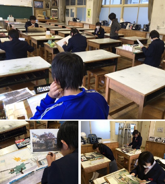 校内の一場面を切り取った「風景画」を制作中。これが,とても上手なんです。
