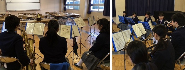 「木管混成8重奏」と「打楽器5重奏」チームの皆さん。納得のいく演奏ができますように。