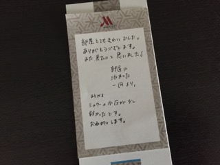 忘れ物点検中に小さな心遣いを見つけました。今朝、各朝食会場で実行委員会より、修学旅行を支えてくれているスタッフさんに感謝の気持ちを持とうと話がありましたが、残りの行程でも感謝を忘れず、活動していきましょう。