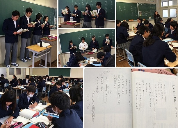 どんな朗読を目指すのか,朗読のポイントを意識させる道浦先生の授業でした。