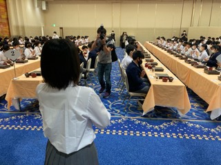 修学旅行もいよいよ最終日です。朝食会場への集合は、予定よりも早くできました。みんなでいただきますをしました。
