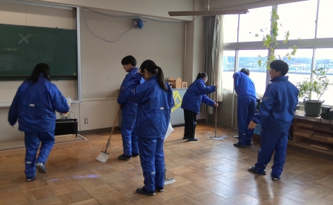 2/18(水)午後、3年生の奉仕作業を行いました。特に特別教室と各クラス教室のワックスがけを中心に行いました。その他、トイレや階段の汚れ落としに集中して頑張りました。かなりきれいになりました。お疲れさまでした。ご苦労様でした。