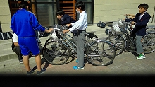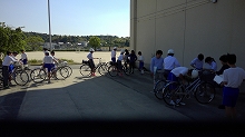 各クラスの安全委員が、自分のクラスの自転車通学者の自転車を対象に「ブレーキの利き具合」「サドルの高さ」「ベル」「反射鏡」などの12項目の点検を行いました。安全に通学するために、ご家庭でも自転車の点検をお願いします。