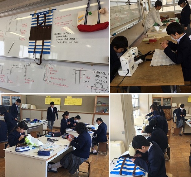1年生の家庭科では,手さげカバンの作成中!