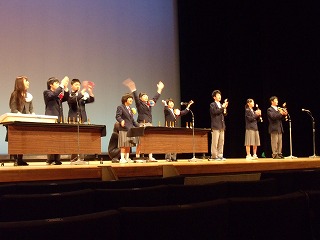 これまで、「世界に一つだけの花」を何回も何回も練習し、学校で職員を観客にして、リハーサルをしました。「笑顔で、楽しんでくるんだよ!」と、激励を受けて発表会に臨みました。