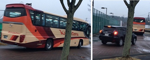 けさ早く出発した,受験生を乗せたバスと緊急対応用の車両(職員自家用車)です。