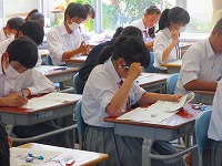 チャイムが鳴った瞬間に,「できた・・・」「勉強したところが,でななかった・・・」「これ,どう解くの?」といろいろな声が聞こえてくる。