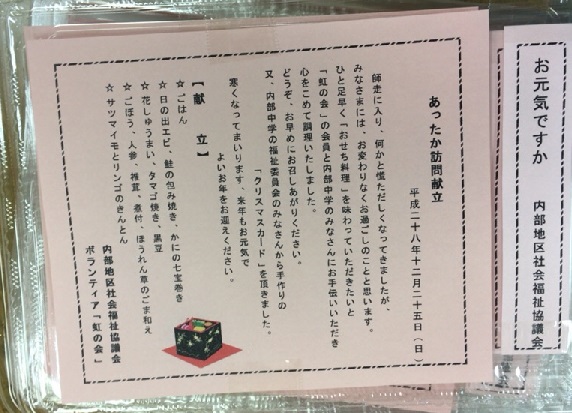 さて,内部地区の「あったか訪問」・・・。今年度の2回目は,偶然にもクリスマスとなりました。