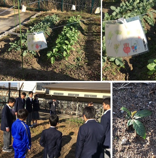 10月に種をまき,11月に畑に植え替え,間引きをし,みんなで育てたダイコンとカブが大きくなりました。