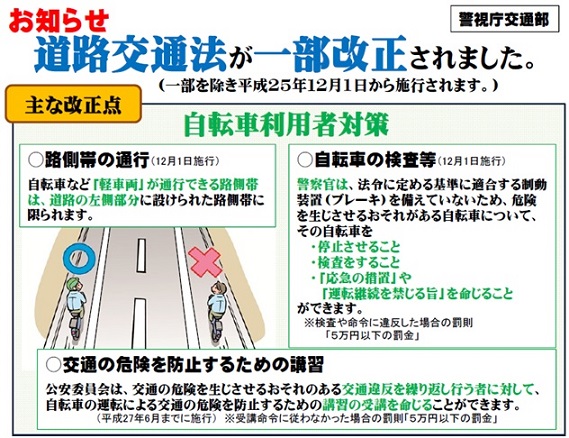 平成27年の6月から,道路交通法の一部が改正され,自転車の運転についてルールが変わったことは知っていますか?
