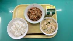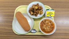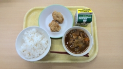 米飯 牛乳 鶏肉のチリソースがらめ ワンタンスープ