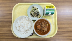 米飯 牛乳 ポークシチュー 海そうサラダ