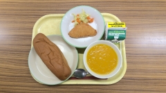 黒糖パン 牛乳 ほっけフライ ゆで野菜 かぼちゃのポタージュ