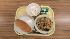 小型玄米パン 牛乳 焼きうどん ベジタブルチップス