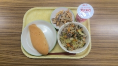 小型玄米パン 牛乳 五目うどん フライビーンズ