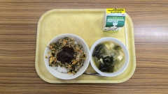 米飯 牛乳 いわしのピリ辛煮 ゆかりあえ 肉じゃが