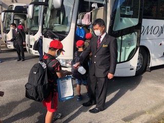 バスに乗る前に、手指を消毒し、感染症対策をして乗り込みました。