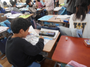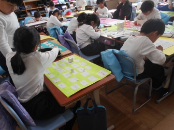 学習の最後に、自分の成長をまとめる活動をしました。すごろくにまとめる子、巻物にする子、紙芝居にする子などいろいろでした。まとめたもの使って友達と発表し合いました。