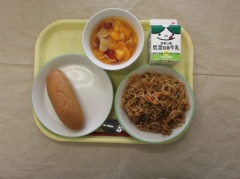 6/25 小型玄米パン 牛乳 ジャージャー麺 フルーツポンチ