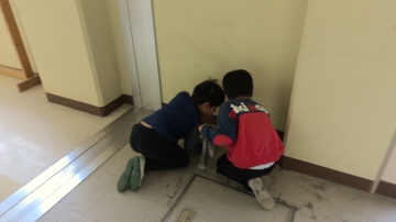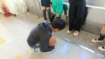 手洗い場近くの水がよく飛ぶところはどうしても黒ずんでいます。ぬれたぞうきんでゴシゴシして、そのあと乾いたぞうきんでふきとり、とてもきれいになりました。その他、靴箱、廊下の隅、トイレ、教室などなど学校がとてもきれいになりました。