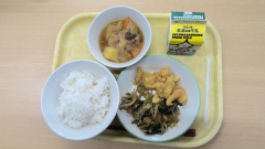 米飯 牛乳 いかのさらさあげ おかか炒め 肉じゃが