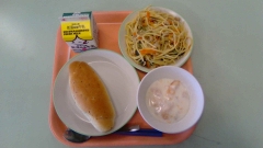 小型玄米パン 牛乳 和風スパゲティ フルーツヨーグルト