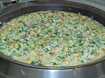 ★マカロニスープは,たまねぎ,にんじん,小松菜などの野菜もたくさん入っています。