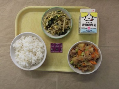 ★今日の肉じゃがは「元気いっぱいメニュー」です。給食では豚肉を使用し,豚肉と玉ねぎを組み合わせると疲労回復に効果があります。また,豚肉とこんにゃくを組み合わせると余分なコレステロールの吸収をおさえる働きがあります。豚肉を使った肉じゃがには,体によいことがたくさんありますね!