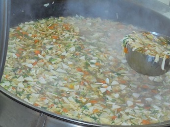 ↑ 鶏肉、大根、にんじん(四日市産)、まこもたけ、油揚げ、かまぼこ、青ねぎの入ったすまし汁です。