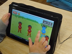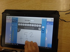 2学期になり、パソコンやタブレットを使った学習を行う回数が増えています。ICT機器を使うことに慣れるために、マウスの動かし方やタブレットのタップの仕方など、基本的な操作を繰り返し行っています。現在は「ジャストスマイル」という学習ソフトを使っており、子どもたちはゲーム感覚で操作を習得していきます。