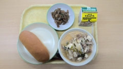 小型玄米パン 牛乳 豆腐チゲ ごぼうの中華きんぴら