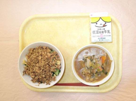 牛乳、にんじん、エリンギ、油揚げ、削節、白菜、小松菜、水耕ねぎ、デコポン