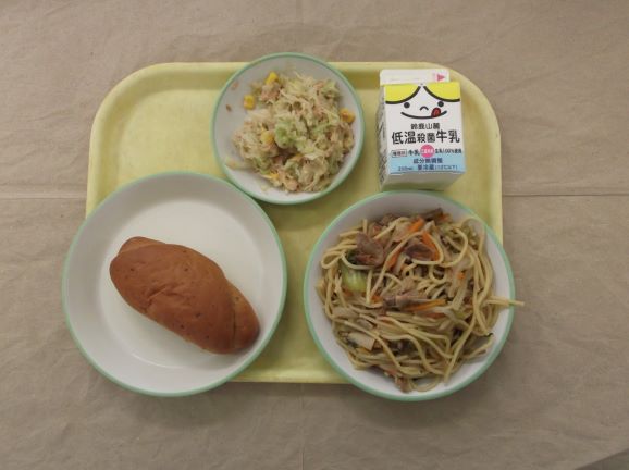 今日はかむ回数が増えるように、サラダに大豆を入れました。