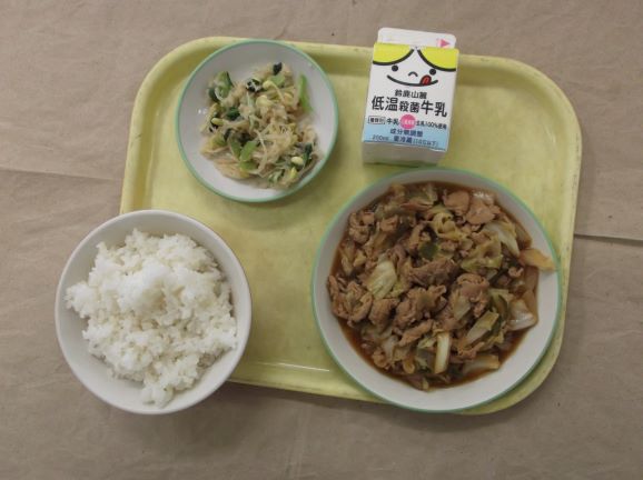 ★今日のナムルの切干大根は乾燥させることによって,生の大根と同じ重さで比べると,骨や歯を丈夫にするカルシウムやおなかの調子をよくする食物せんい,貧血を予防する鉄分などの栄養が多く含まれています。かみごたえのある小大豆もやしや小松菜といっしょにナムルにしました。