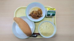 米粉パン 牛乳 たらのレモン南蛮だれ コーンスープ