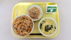 キムタク丼 ツナともやしのあえもの わかめとたまごのスープ