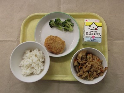 米飯 牛乳 手作りれんこんメンチカツ
