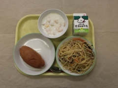 5/7 小型玄米パン 牛乳 和風スパゲッティ フルーツヨーグルト