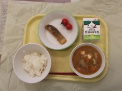 6/17 米飯 牛乳 しいらのカレーあげ ミニトマト 地物たっぷりみそ汁