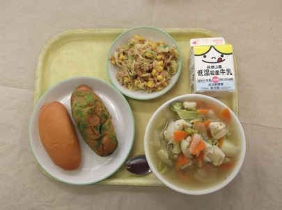 ↑ ポトフも6年生のみなさんに聞いた、思い出に残っているメニューで、「お母さんとけんかして、学校に来たらポトフが出た。お母さんの味ににていた。そして、その夜お母さんにあやまれた」とお家の人との思い出エピソードがありました。