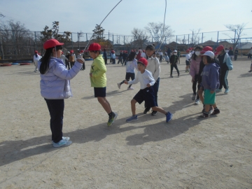 体育委員会の子の合図で、スタートします。どの子も真剣そのもの。跳ぶ子だけでなく、回す子もすごい集中力が必要です。制限時間いっぱい全力を尽くしました。連続で入っていくことや、早く回る縄に飛び込んでいくことに苦手意識を持つ子ももちろんいると思います。それでも、周りの子のかけ声に勇気をもらいながら、跳ぼうとがんばる姿は素敵でした。