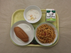 7/16 パン 牛乳 夏野菜と魚介のスパゲッティ フルーツヨーグルト